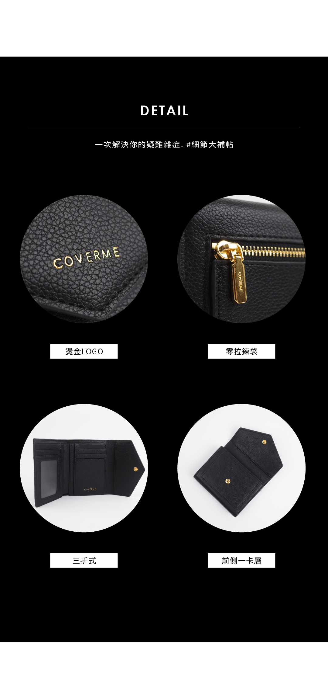 規格:卡層x4 照片層x1 內夾層x6 拉鍊格x1 鈔票層x1